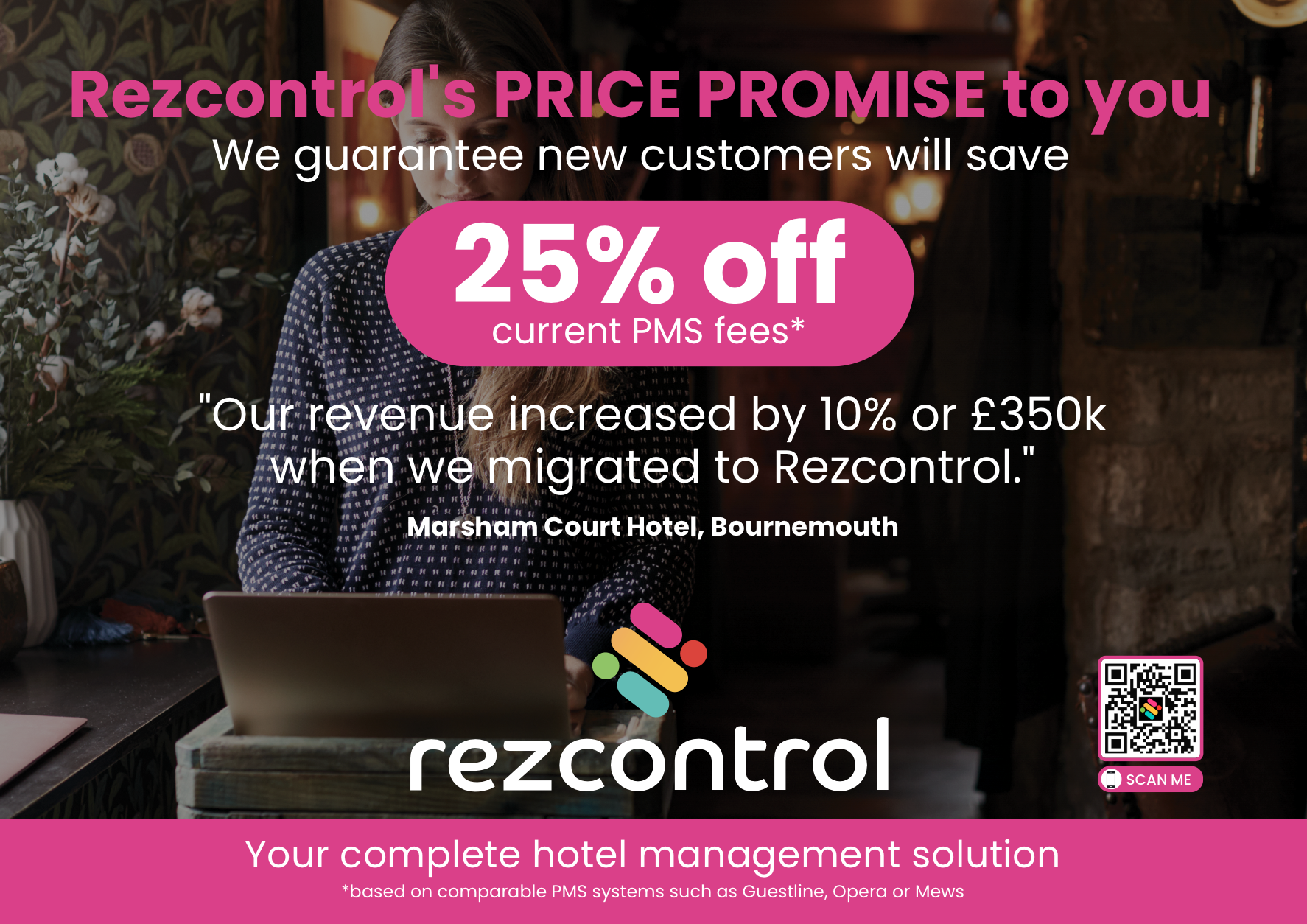 “At Rezcontrol we are passionate about providing the best possible functionality, service and real value,” concluded Sarah. “That’s why we’re prepared to guarantee 25% off a hotel’s current fees, against a comparable PMS provider. This is a long-term price promise; not a gimmick, and it has no expiry date. We’re doing it because we really believe in offering best value.”